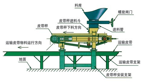 ⑷皮帶秤下方距主皮帶高度不低于300mm,并安裝輸料溜槽保證料流均勻分布在主皮帶中心。